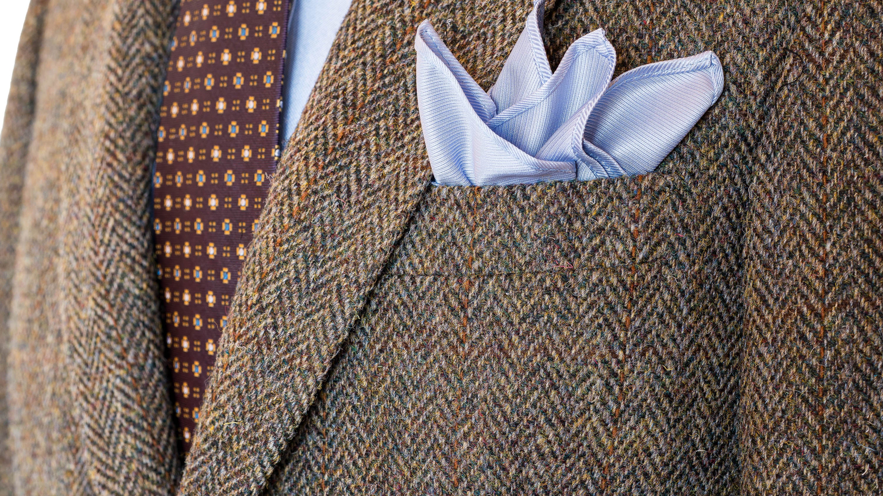 Olive Herringbone With Window Pane Harris Tweed All Wool Sport Coat - Woven In Scotland